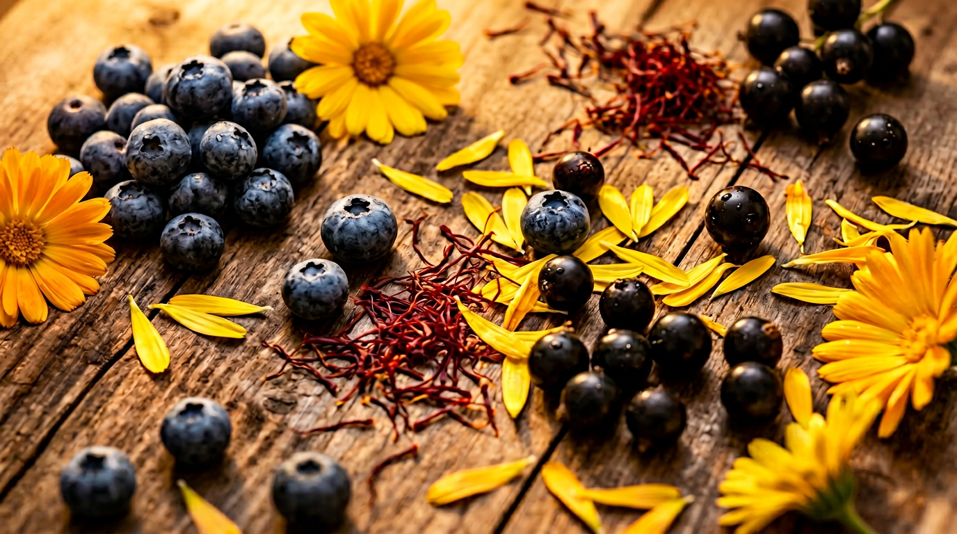 Saffron and astaxanthin work together to neutralize oxidative stress at the cellular level, helping preserve the delicate photoreceptor cells of the retina.
